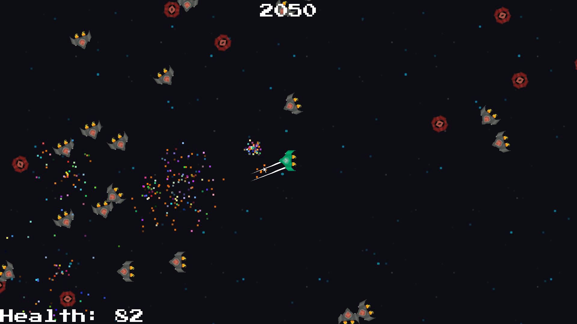 Collect colorful loot. Kills restore health. KEEP MOVING!