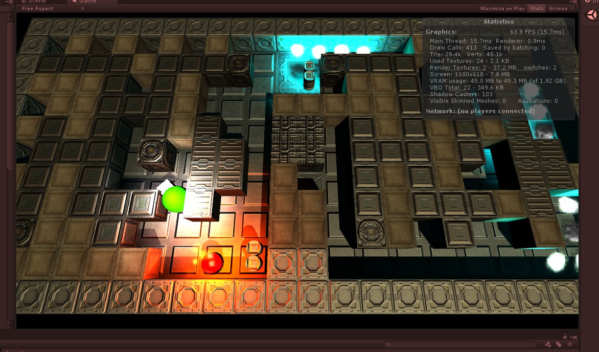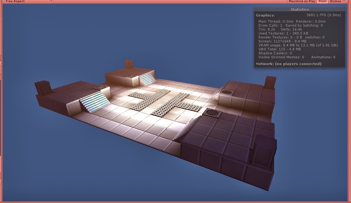 The entire scene is just 1 draw call, which leaves plenty of room for players, powerups, and effects. I don’t plan to do much more optimization. Players and powerups probably won’t be batched, unless performance demands it.